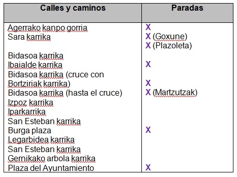 Las personas que vivan en los barrios de Suspela, Suspelttiki, Garaitarreta, Zia y Dornaku también realizarán este recorrido.